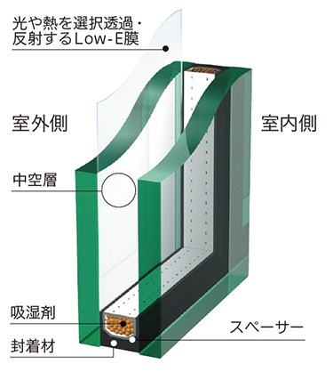高性能低放射ガラス(Low-E)採用